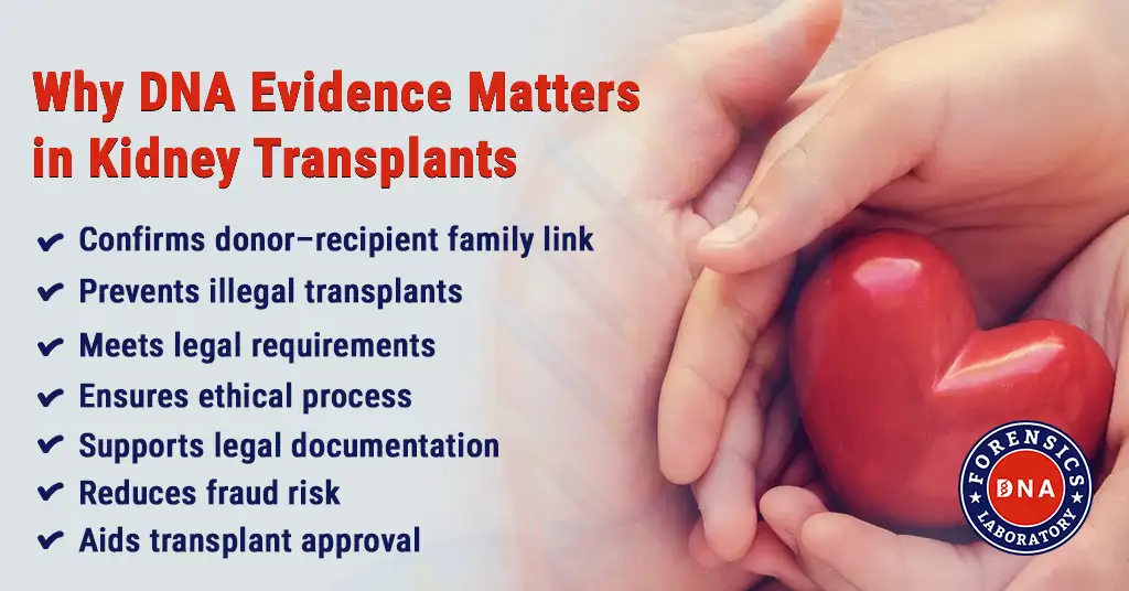 Because kidney failure can become a medical emergency, finding a donor quickly is important. Most of the time, family members are the first choice for a donor because they are often the best genetic match. Just like with other organs, a DNA test for kidney transplant is required by law to verify the family link. This test not only fulfills the legal requirements of the THOA but also helps the surgical team understand the compatibility between the two people.